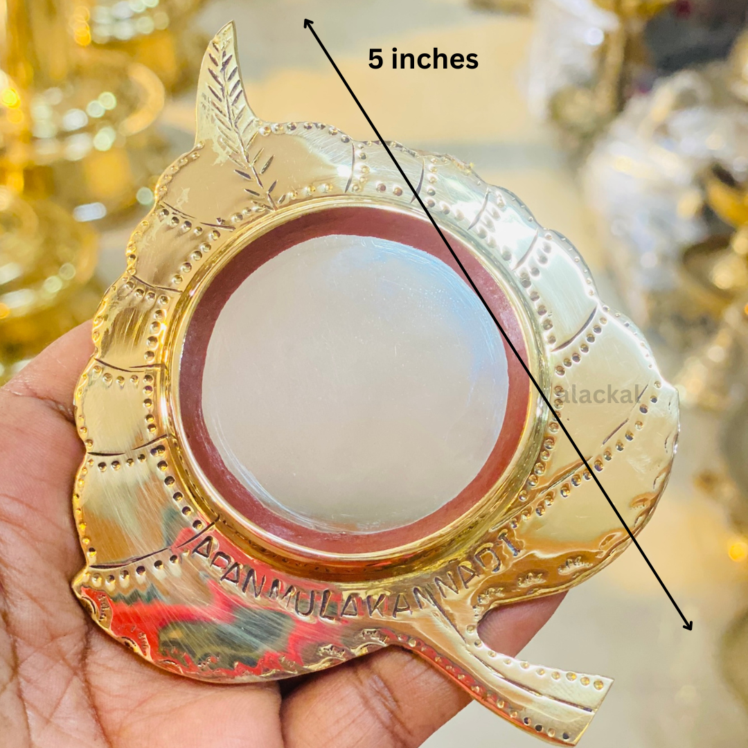 AUTHENTIC ARANMULA KANNADI ( AALILA SHAPE ) | LEAF SHAPED METAL MIRROR FOR GIFTING