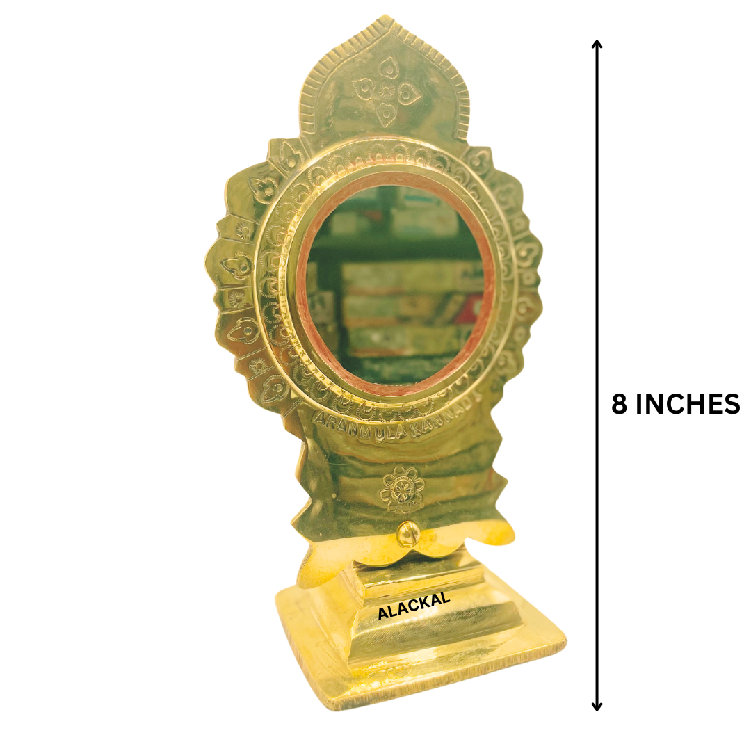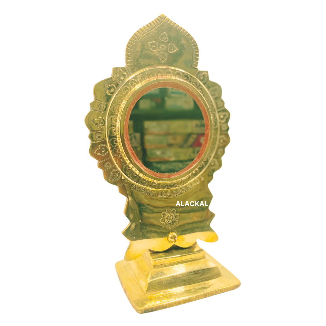 What sets the Aranmula Kannadi from Alackal Bell Metals apart is the thoughtful addition of a stand, allowing you to effortlessly showcase this handcrafted beauty on your tables or in your showcases. The stand not only enhances its display possibilities but also makes it a versatile piece of décor. Whether gracing your living room, bedroom, or any other space, the Aranmula Kannadi becomes a focal point of elegance and cultural richness.