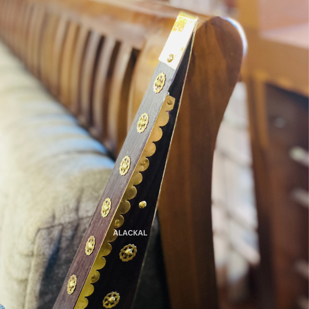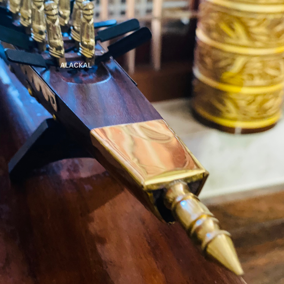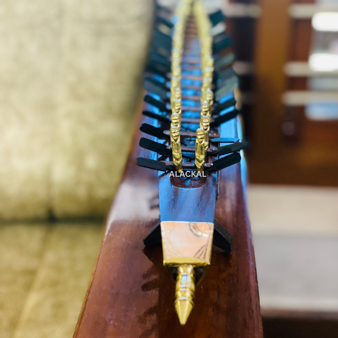 These boats can feature 30 brass men figurines on board, symbolizing the powerful oarsmen of the Aranmula Vallamkali. Each brass figure is hand-carved and reflects the spirit and strength of the men who row the boats with fierce dedication. These brass figures highlight the unity and determination of Kerala’s boat race culture. Whether used for display or pooja room decor, these wooden boats with brass designs radiate a traditional charm.