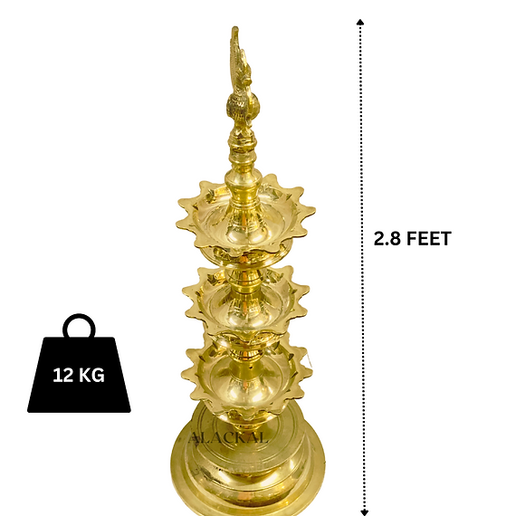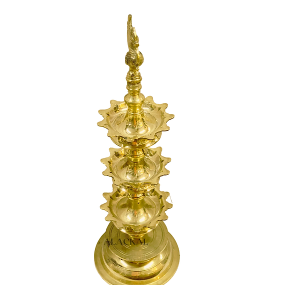 Peacock Feathers: In addition to the peacock head, the Deepasthambham might incorporate peacock feathers as part of the design.