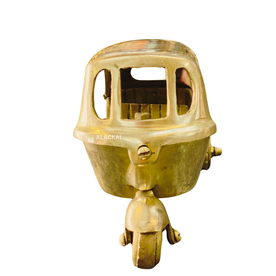 At Alackal Bell Metals, skilled artisans pour their heart into every detail. The meticulous craftsmanship ensures that each brass auto rickshaw is a one-of-a-kind masterpiece, making it a standout addition to your decor.