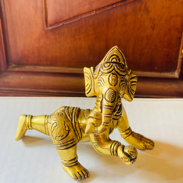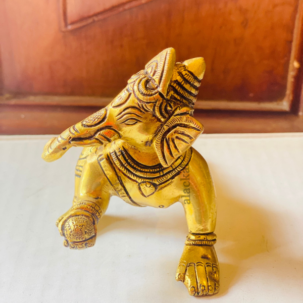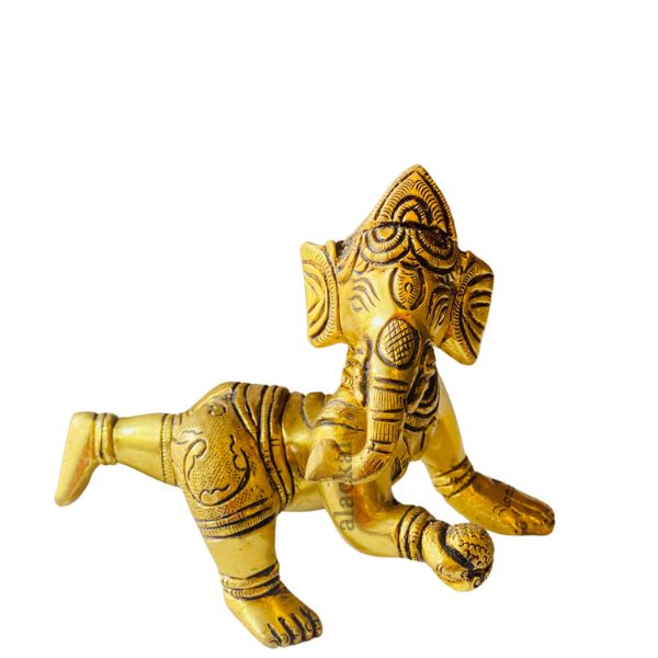 BRASS CRAWLING BABY GANESHA WITH MODAK ON HAND | SMALL GANESH MURTHI | MODAK BALAK