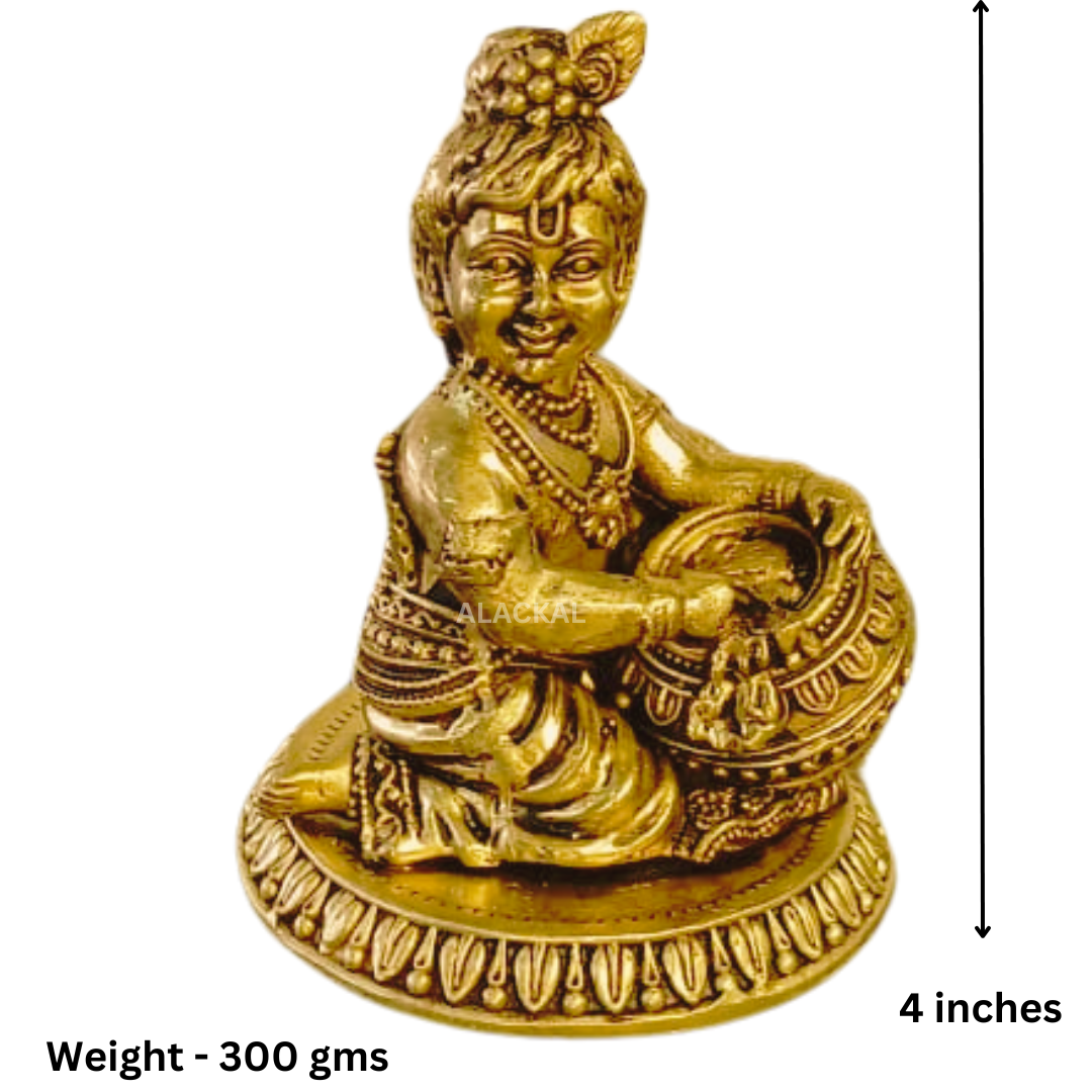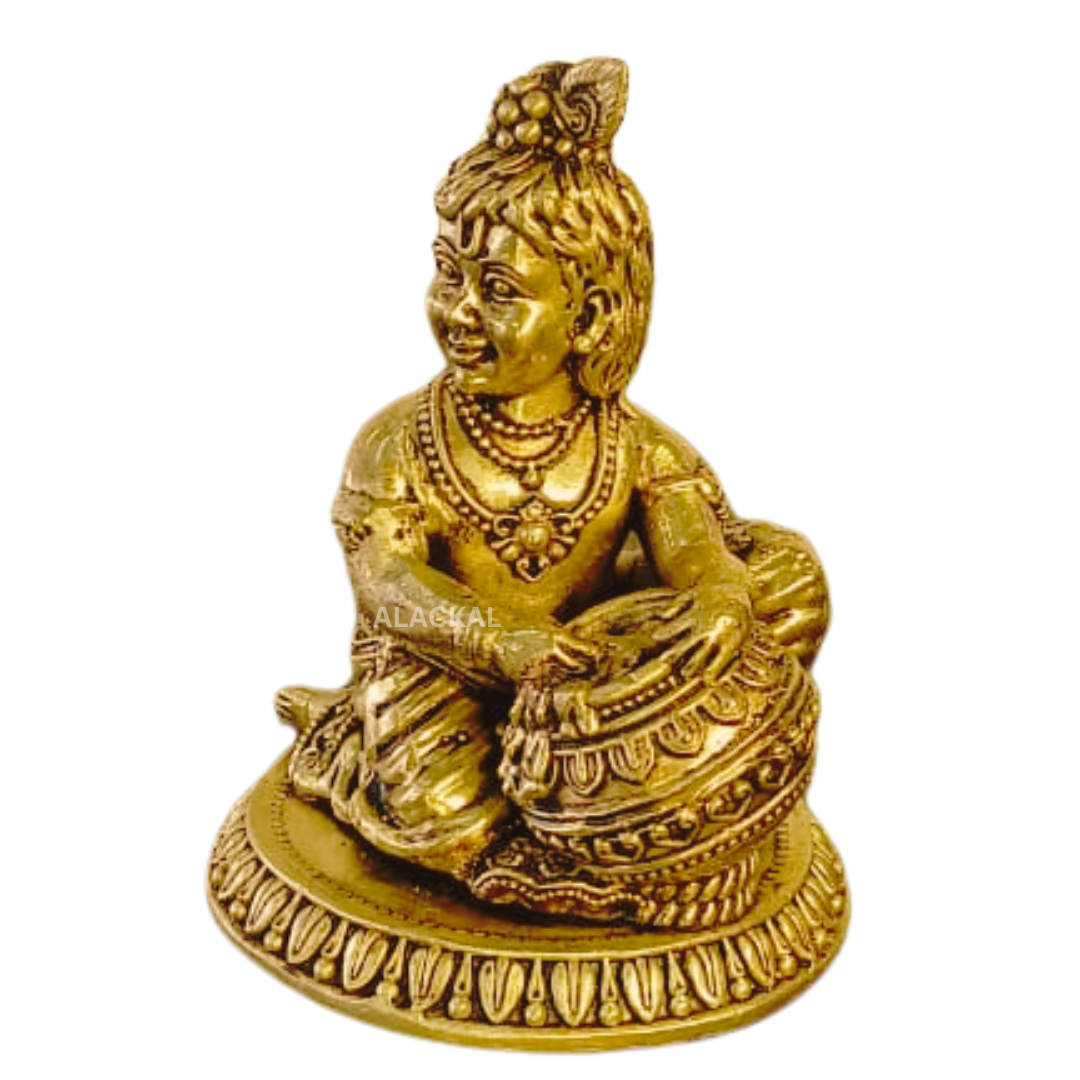 Brass Laddu Gopal idols are widely favored due to their durability, elegant look, and association with Hindu spirituality. Brass, a blend of copper and zinc, is not only strong but also believed to carry spiritual energy, making it the perfect material for puja idols. The cute Laddu Gopal idol is especially popular among households where devotees worship Lord Krishna in his infant form, often referred to as Bal Gopal or Vennakannan.