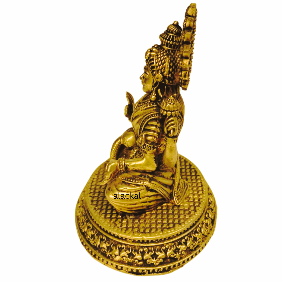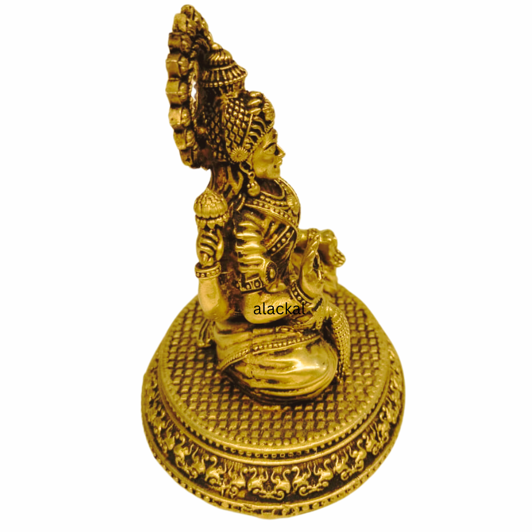 Exquisite Craftsmanship: Each brass Dhanalakshmi idol is meticulously handcrafted by skilled artisans at Alackal Bell Metals. The intricate detailing in the idol’s features, attire, and ornaments reflects the high level of craftsmanship and devotion put into each piece.
