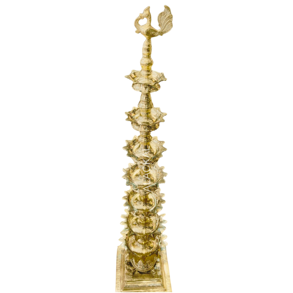 The Deepasthambham (Sthambha Vilakku) has been a part of Kerala temple traditions for centuries. Lighting this lamp is believed to invite Mahalakshmi’s blessings, remove negativity, and spread prosperity. The tortoise base symbolizes Kurma avatar of Vishnu, grounding the lamp with divine energy, while the peacock head represents beauty, devotion, and spiritual awakening.