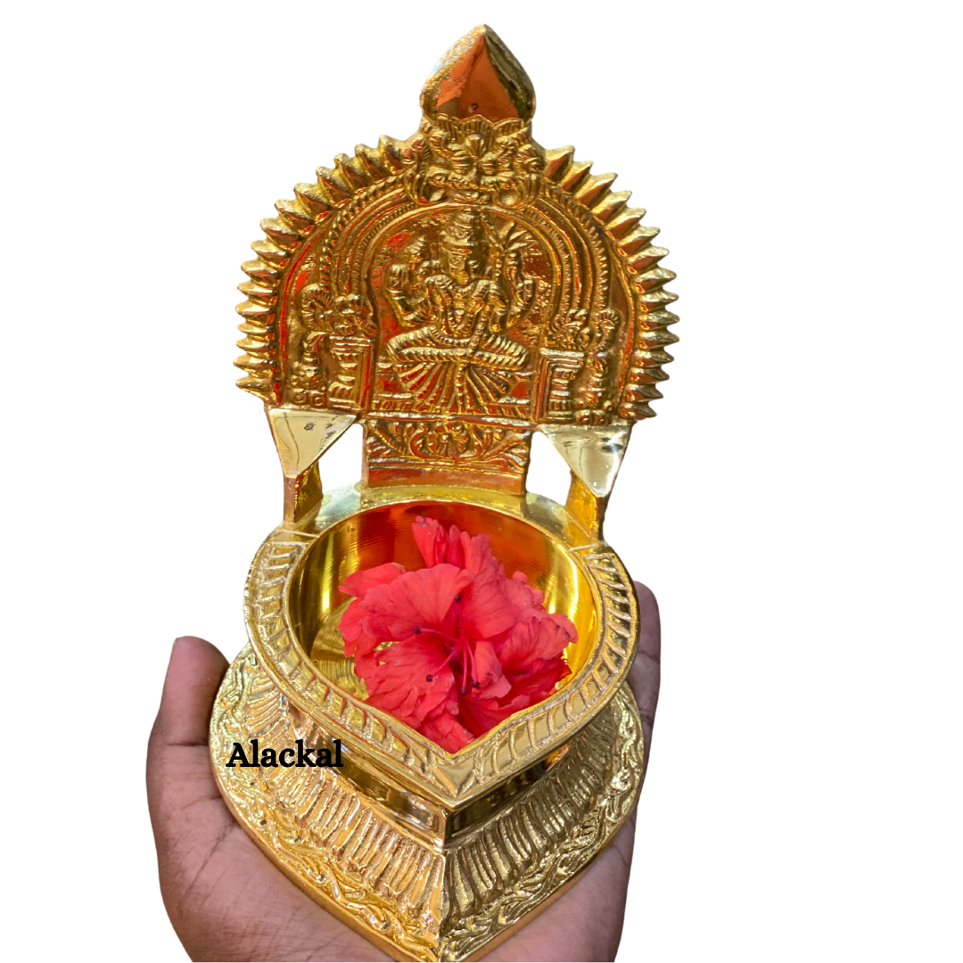 Crafted by Alackal Bell Metals in Mannar, this Brass Kamakshi Amman Lamp boasts traditional design and durable construction. Illuminate any space with its radiant glow and honor the revered goddess Kamatchi. Add a touch of elegance and spirituality to your home or place of worship with this stunning brass lamp.