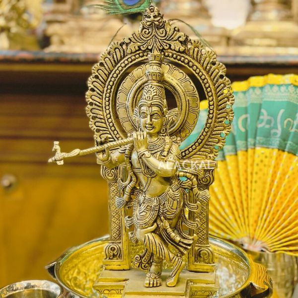 A brass Krishna idol is a perfect gift for housewarming, Vishu, temple donations, and spiritual seekers.