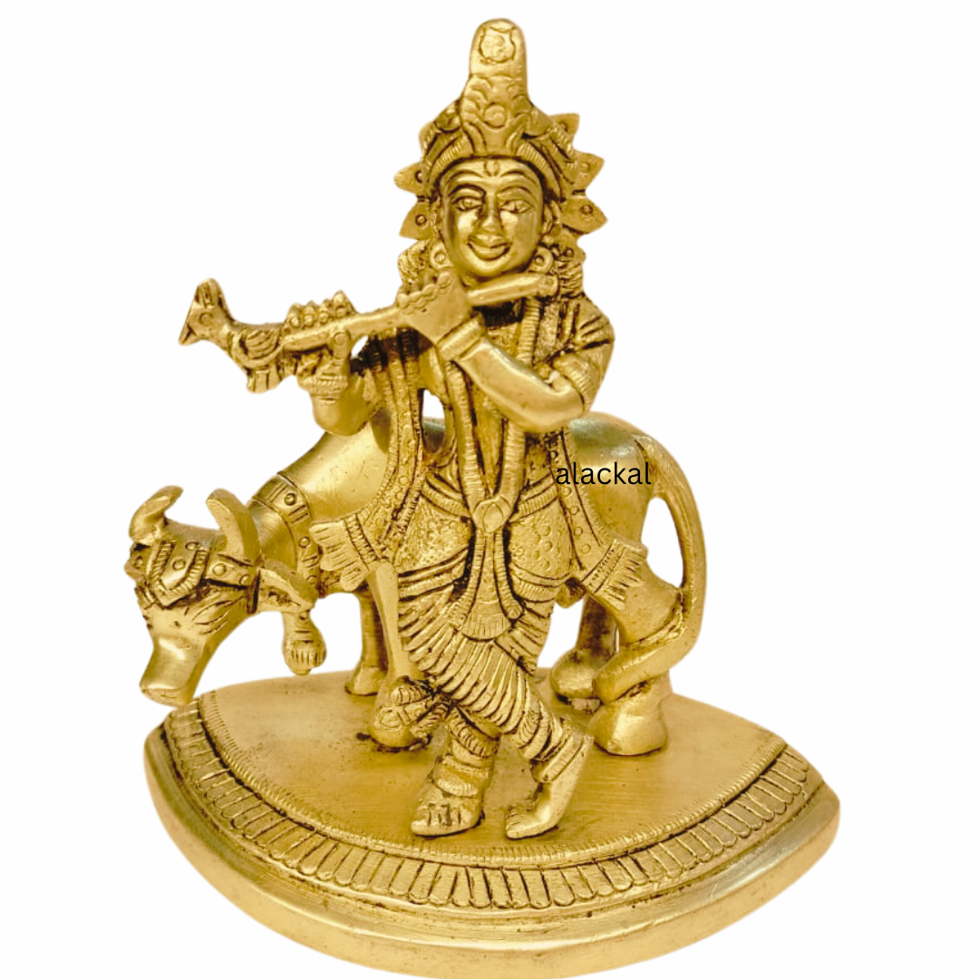 Divine Elegance: Brass Krishna Idol with Cow from Alackal Bell Metals, Mannar