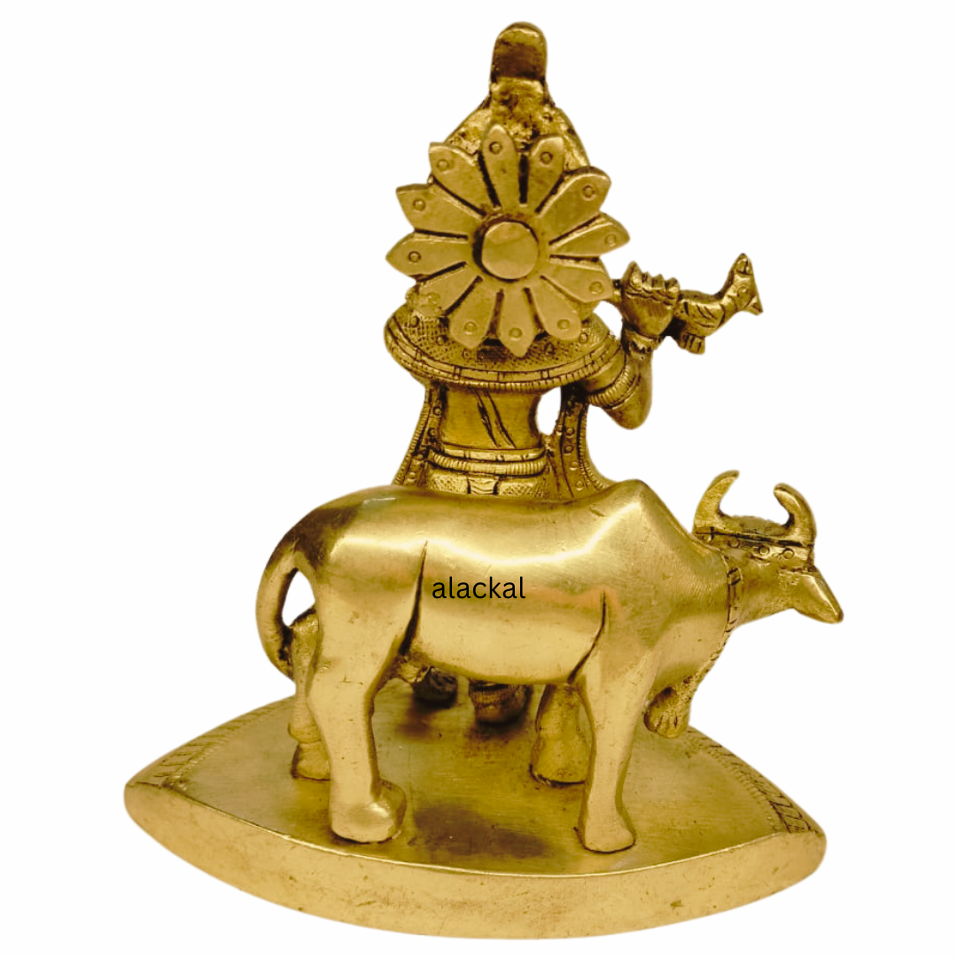 Exquisite Craftsmanship: Each brass Krishna idol with a cow is meticulously handcrafted by skilled artisans at Alackal Bell Metals. The intricate detailing in the idol’s features, attire, and the cow showcases the high level of craftsmanship and devotion put into each piece.