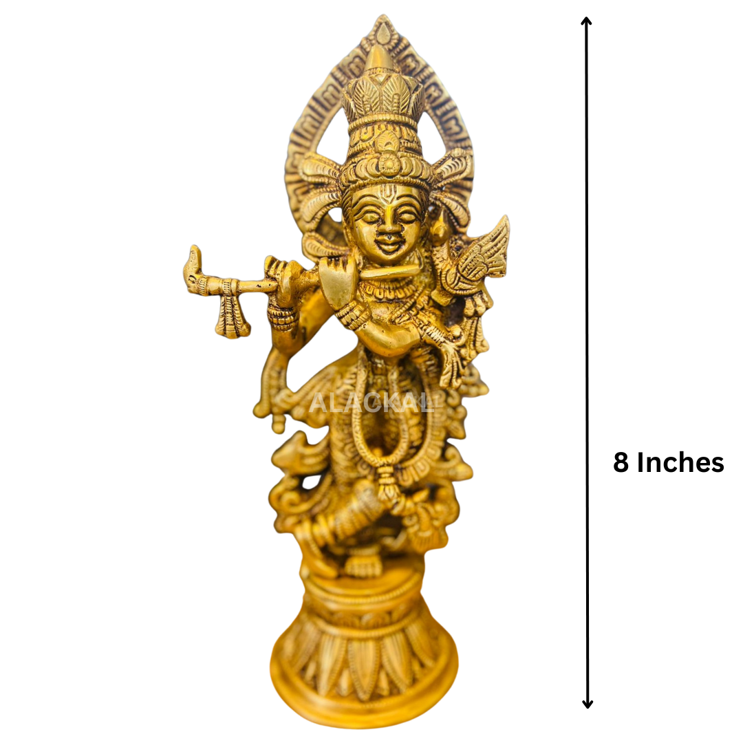 Divine Elegance: Premium Brass Krishna Idol with Flute & Base Peedom for Home Decor and Gifting from Alackal Bell Metals, Mannar