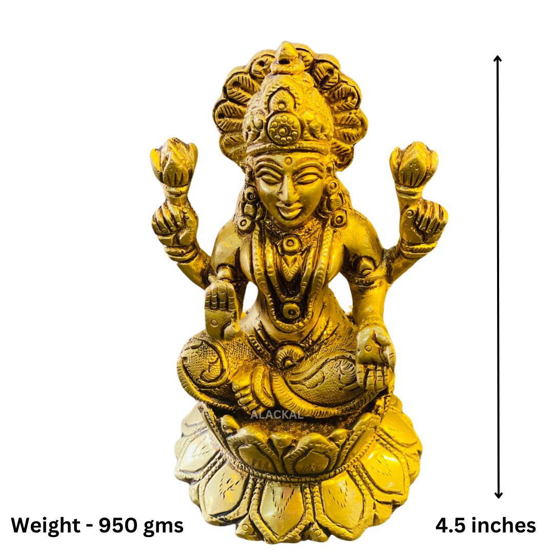 Enhance Your Home Pooja with the Brass Lakshmi Deli Idol Sitting on a Lotus