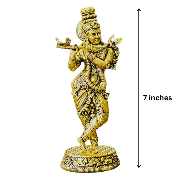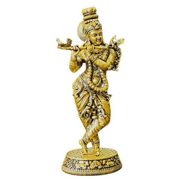 Brass Lightweight Antique Shade Krishna Idol with Flute – Divine Home & Puja Room Decor | Handmade by Alackal Bell Metals, Mannar