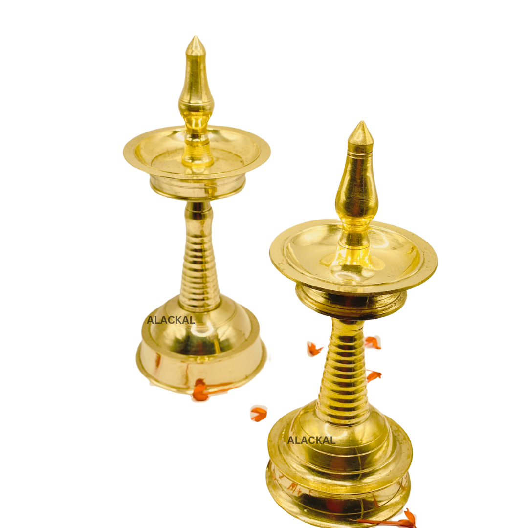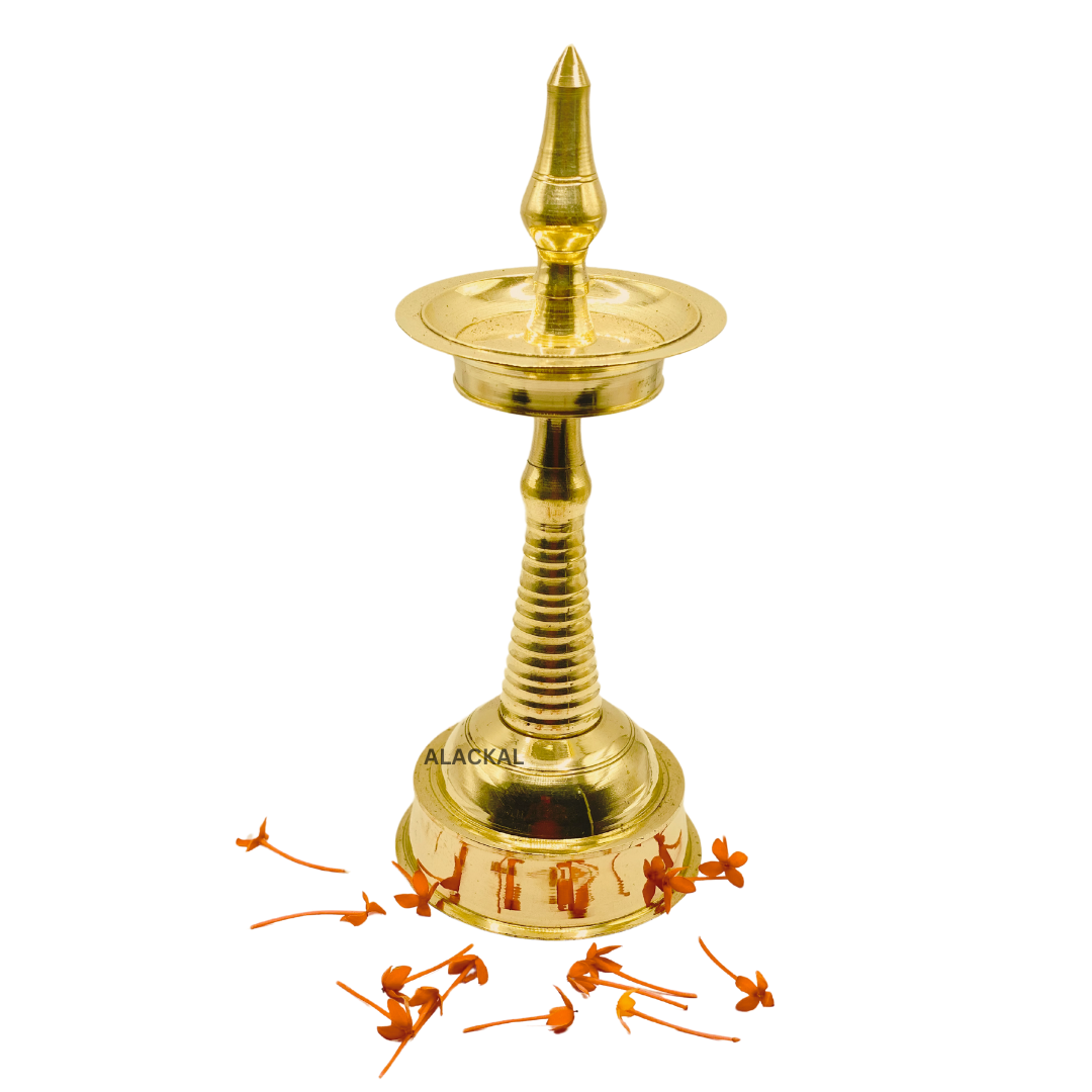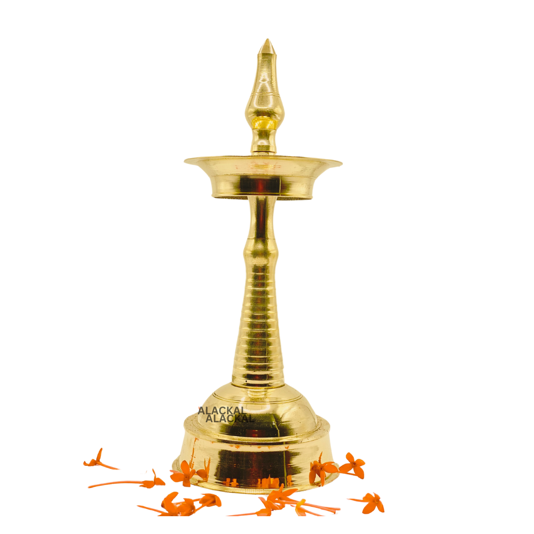 Elevate the ambiance of your home with our Brass Lightweight Lamp from Alackal Bell Metals in Mannar, Kerala. Designed for small pooja rooms and home decoration, it boasts a sleek and lightweight brass frame for easy placement and a touch of elegance. Experience traditional lighting at its finest with our nilavilakku / oil lamp.