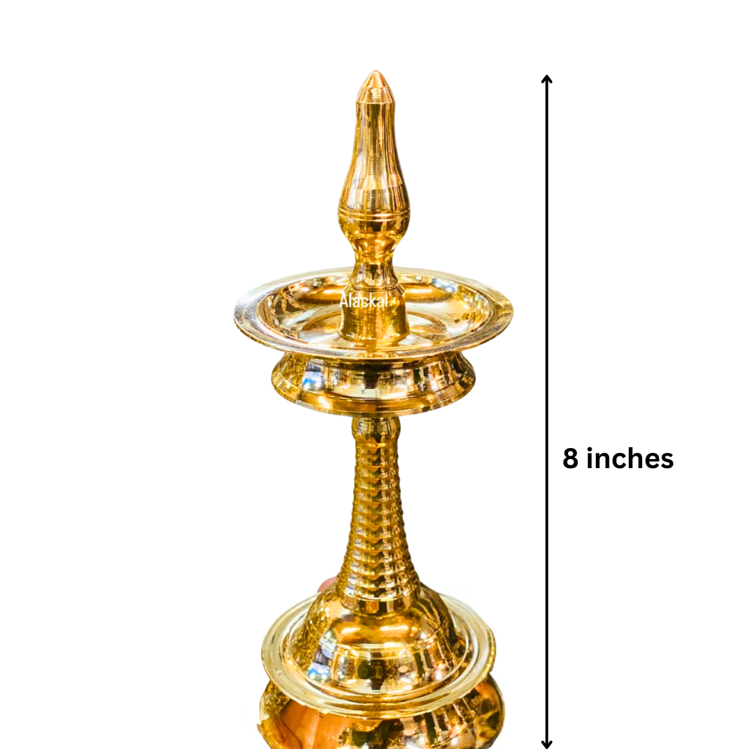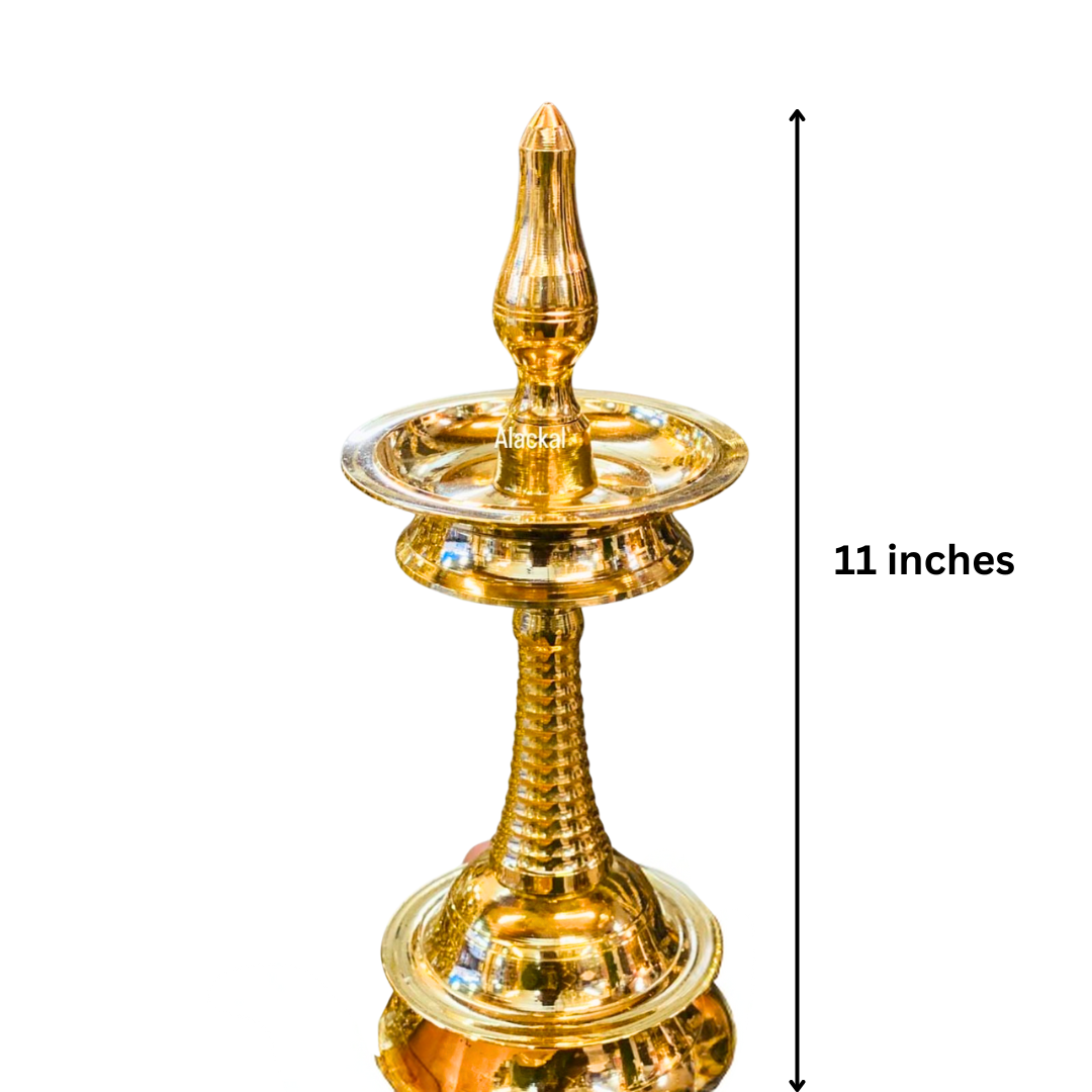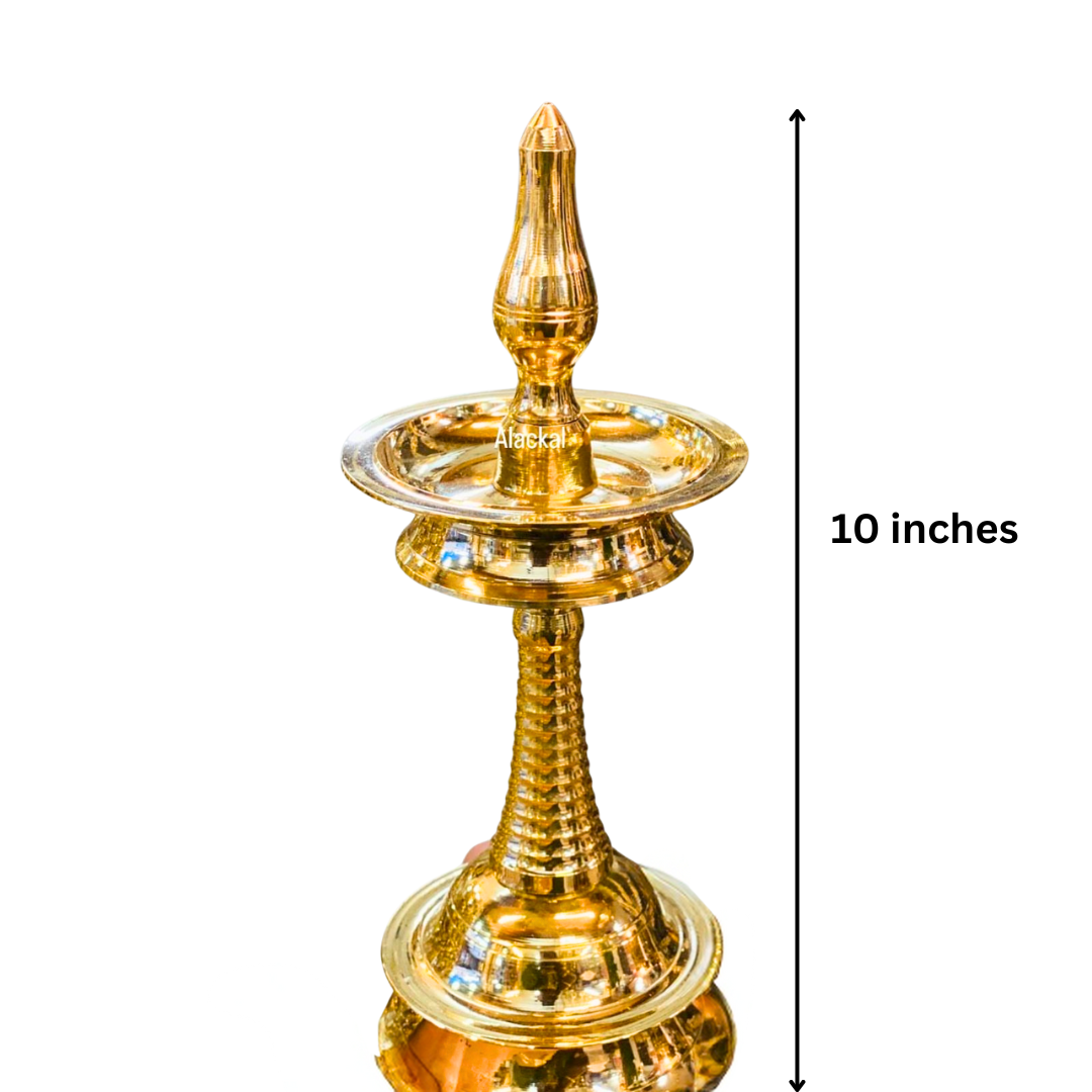 Enhance the ambiance of your home pooja room or temple with the brass lightweight nilavilakku from Alackal Bell Metals. This beautifully crafted lamp is made of durable brass and is perfect for everyday use. Bring traditional elegance to your worship space with this must-have item from Mannar.