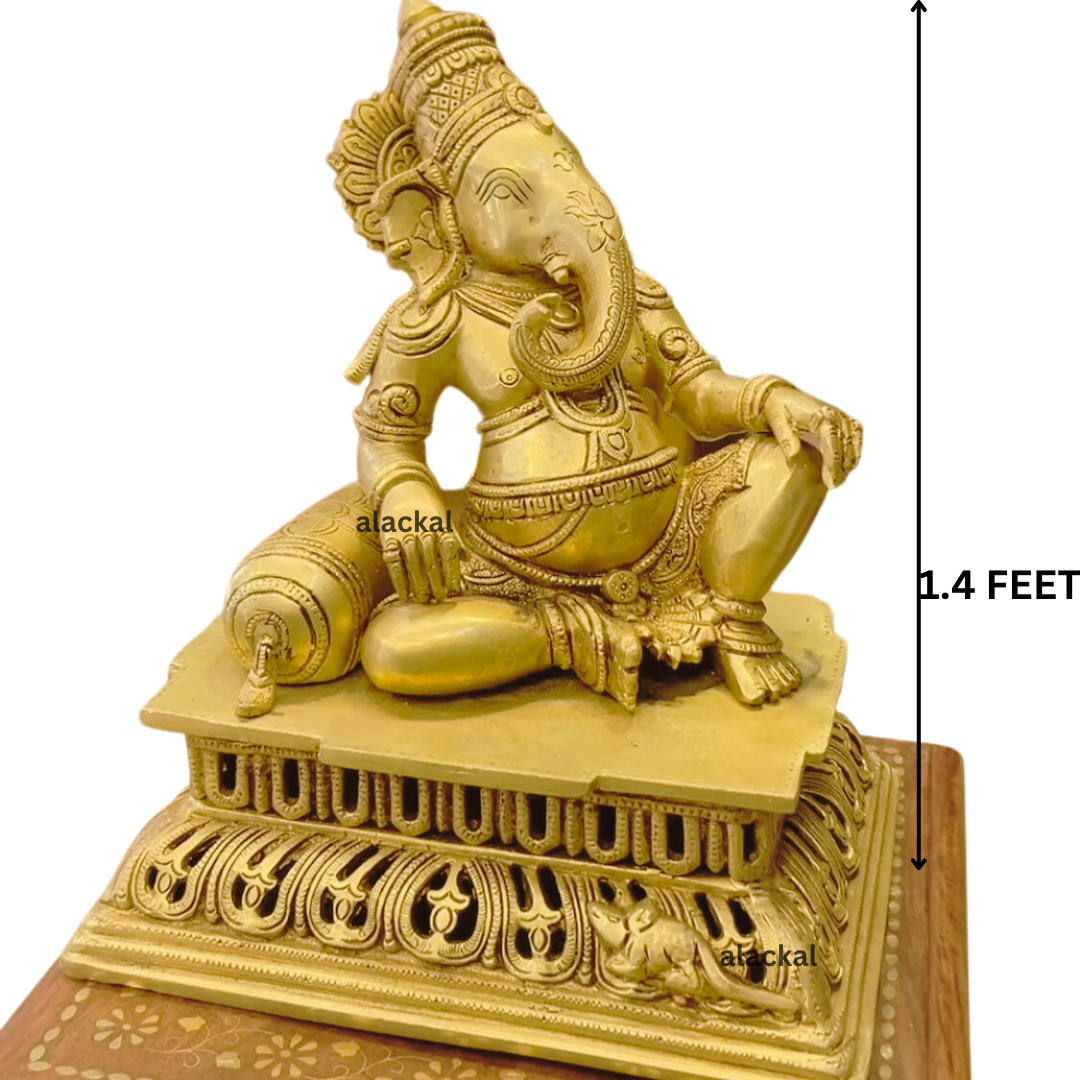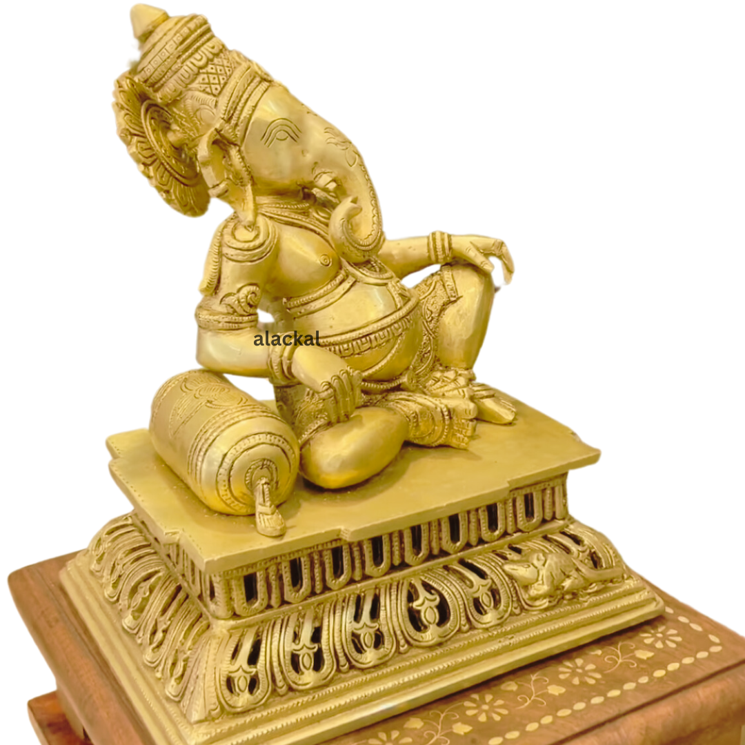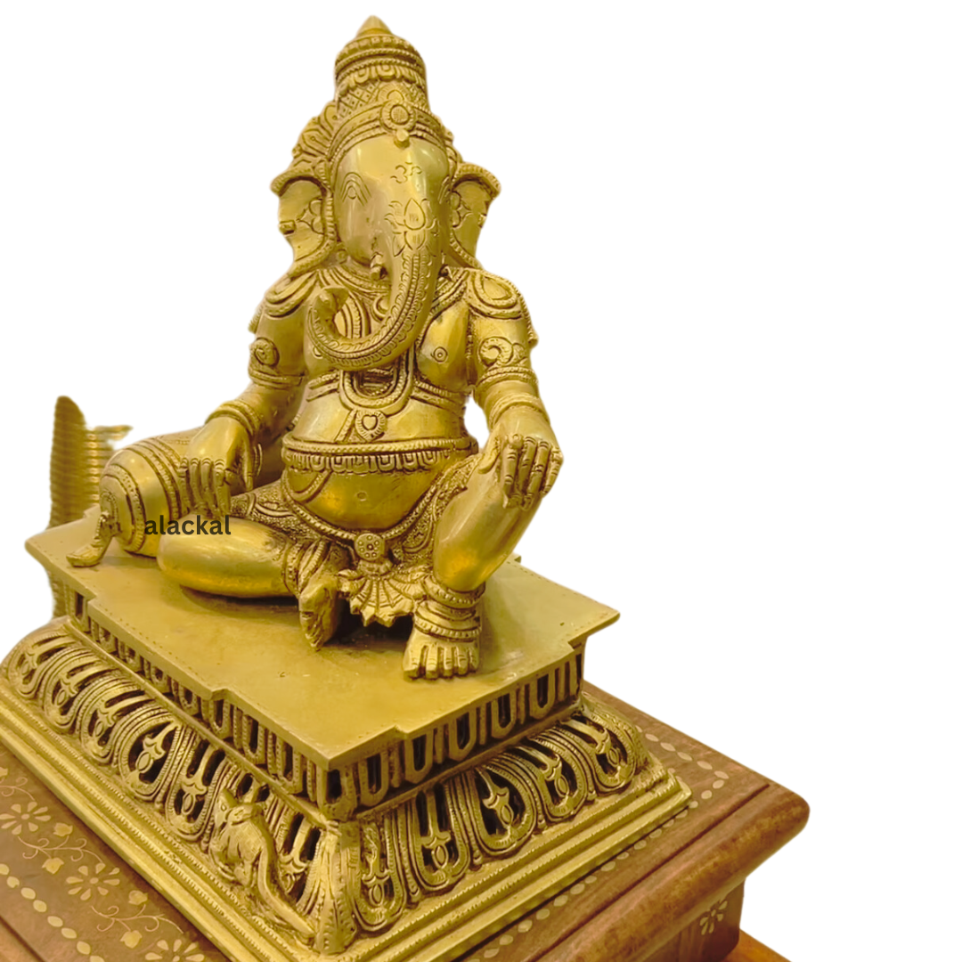 - Intricate Detailing: The statue showcases fine craftsmanship, with minute carvings on Ganesha's ornaments, attire, and the ornate diwan.