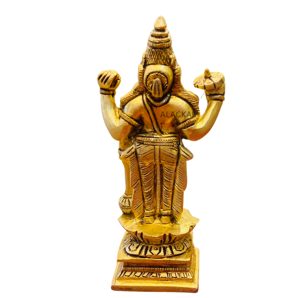 Brass Mahavishnu idol, Mahavishnu idol for pooja room, daily rituals brass idol, Lord Vishnu brass idol, brass pooja room decor, Mahavishnu idol for daily pooja, brass religious idols, Mahavishnu idol for home, Alackal Bell Metals, buy brass Mahavishnu idol, brass pooja items, Lord Vishnu idol from Mannar, handcrafted Mahavishnu idol.