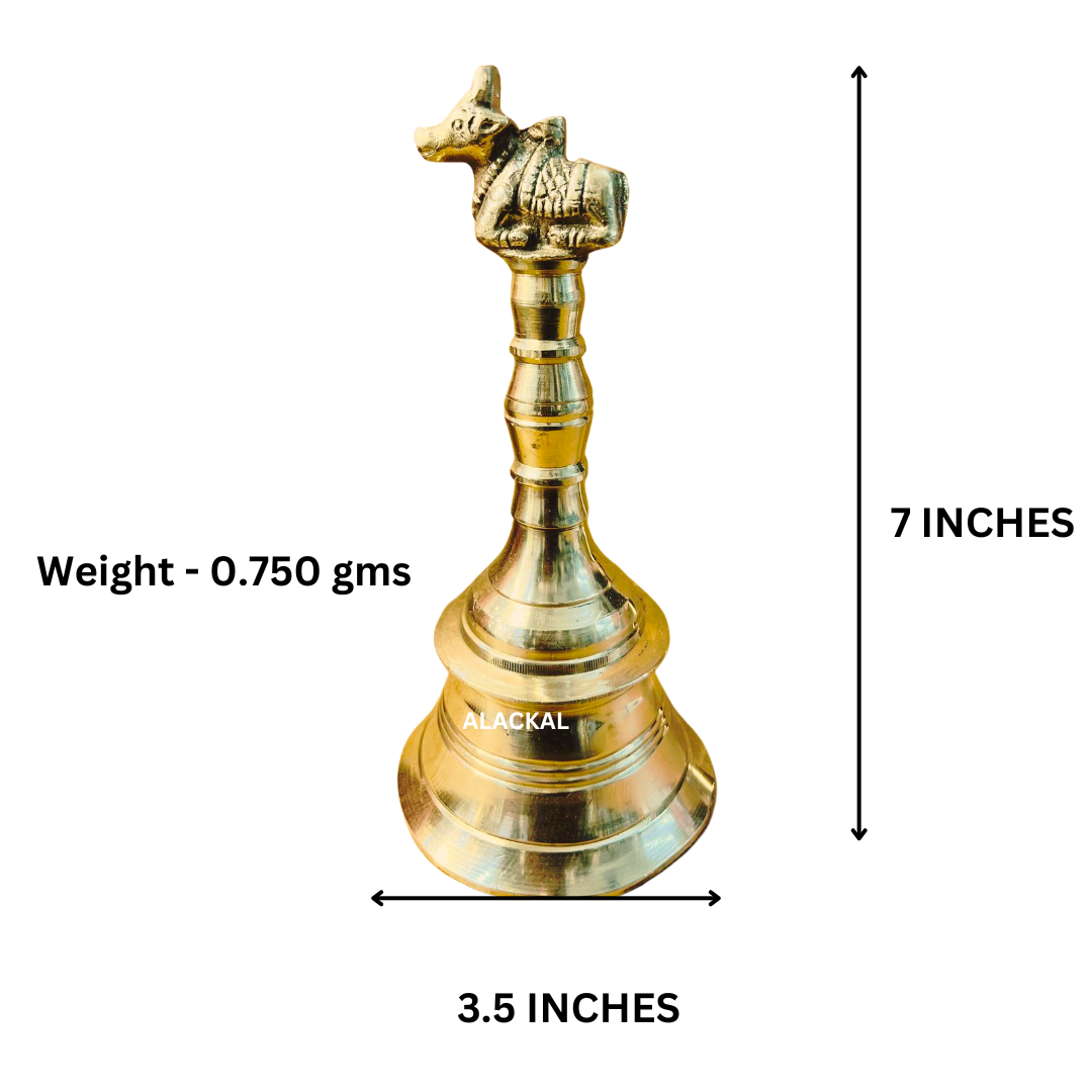 BRASS POOJA BELL WITH NANDHI FOR TEMPLE POOJA RITUALS