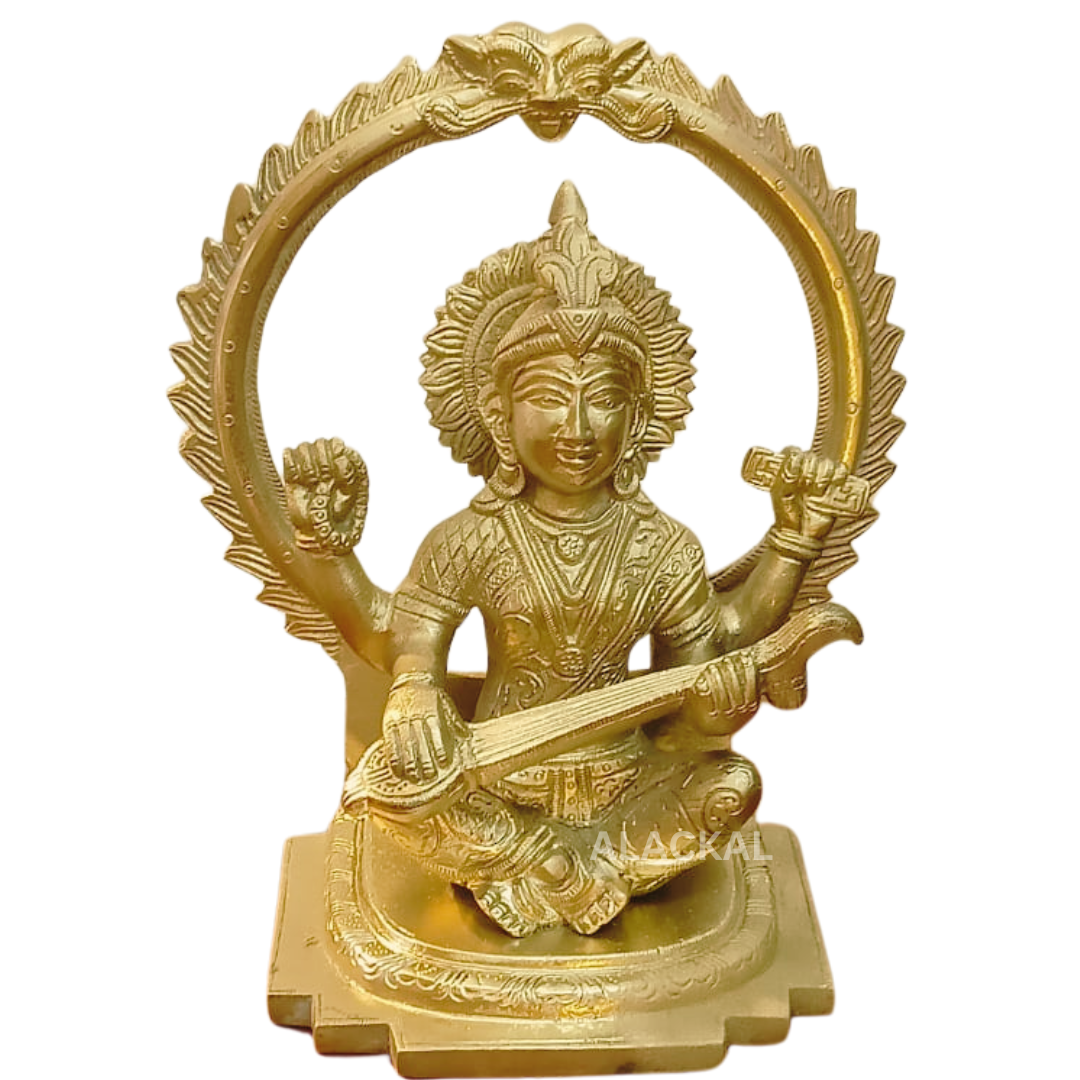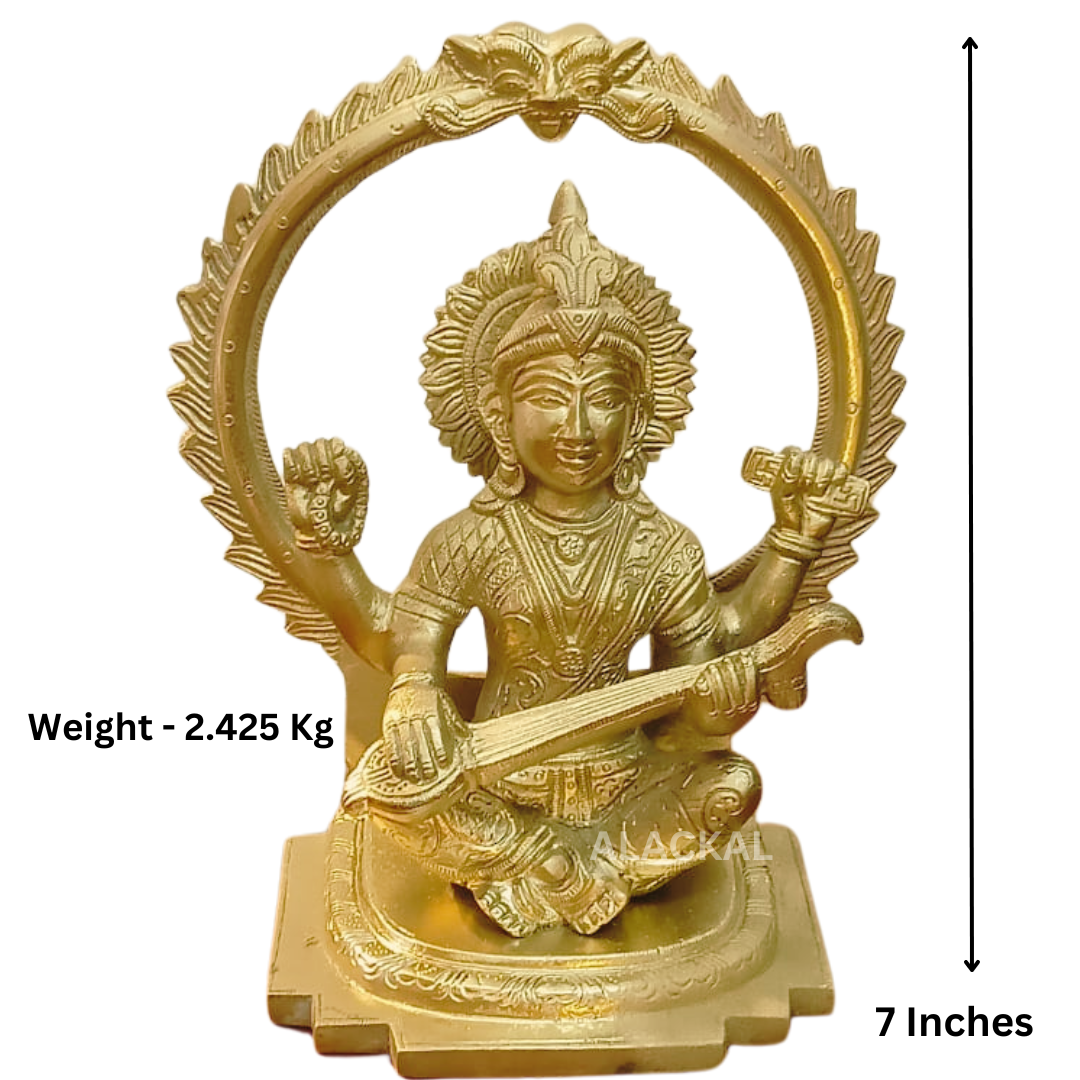 BRASS SARASWATI DEVI IDOL WITH PRABHAVALI FOR POOJA RITUALS | VIJAYADASAMI