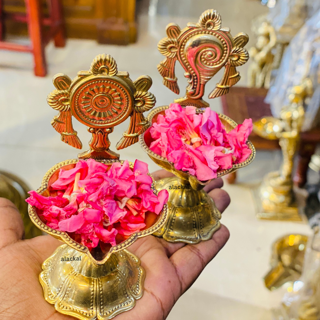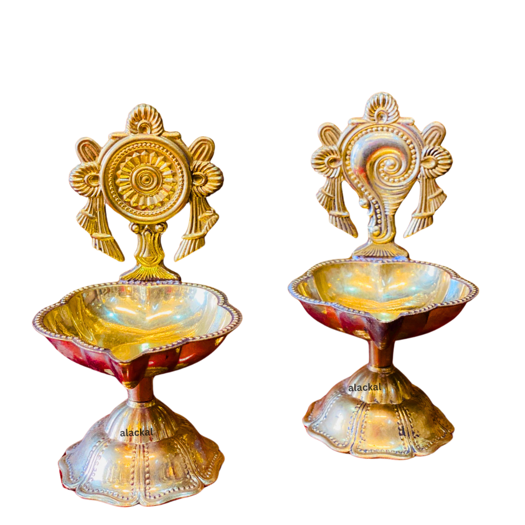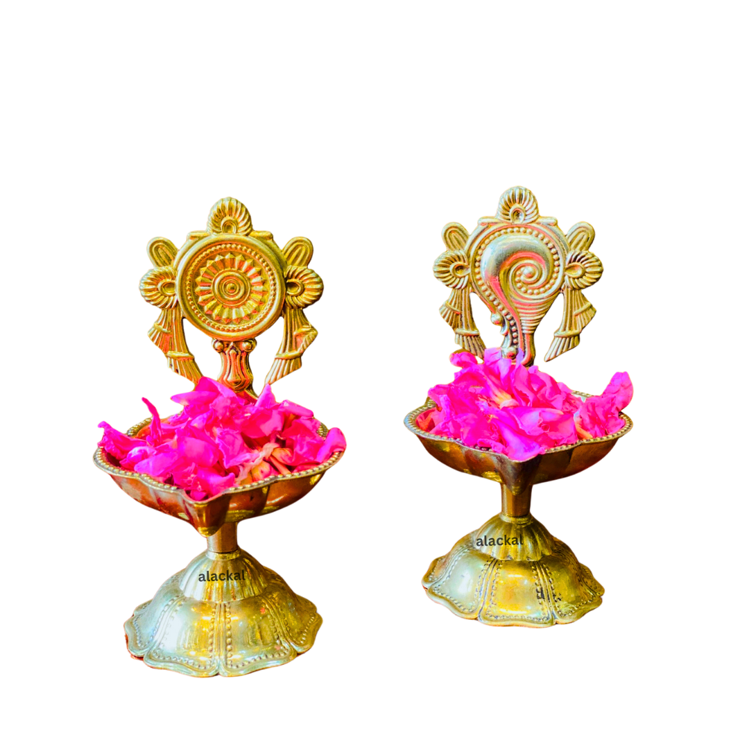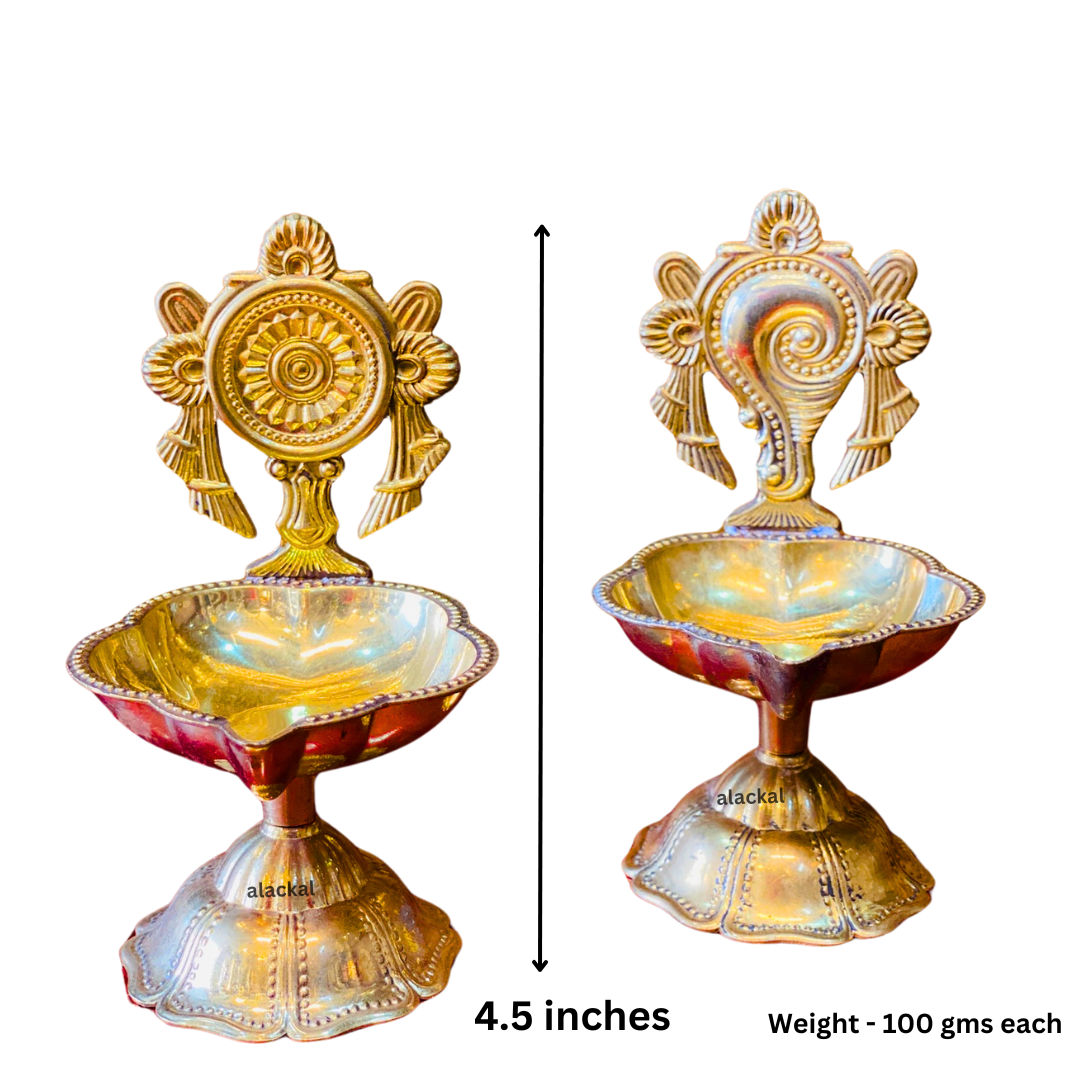 Brass Lightweight Shankh and Chakra Diya: Perfect for Small Pooja Rooms, Diwali Decor, and Unique Gifts from Alackal Bell Metals, Mannar