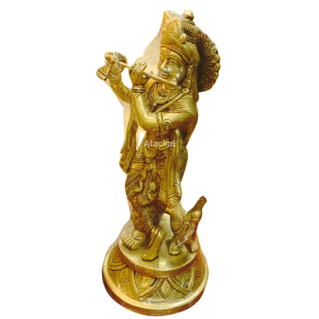 The worship of Krishna, one of the most beloved deities in Hinduism, has transcended centuries and generations, capturing the hearts of millions with His divine playfulness and profound teachings. Among the various depictions of Krishna, the brass Krishna idol with peacock and base peedom stands out as a quintessential representation of this beloved god. This particular Krishna vigraham, crafted by the artisans at Alackal Bell Metals, Mannar, is a masterpiece that not only carries immense spiritual importance but also serves as an exquisite home decor piece or a meaningful gift for special occasions.
