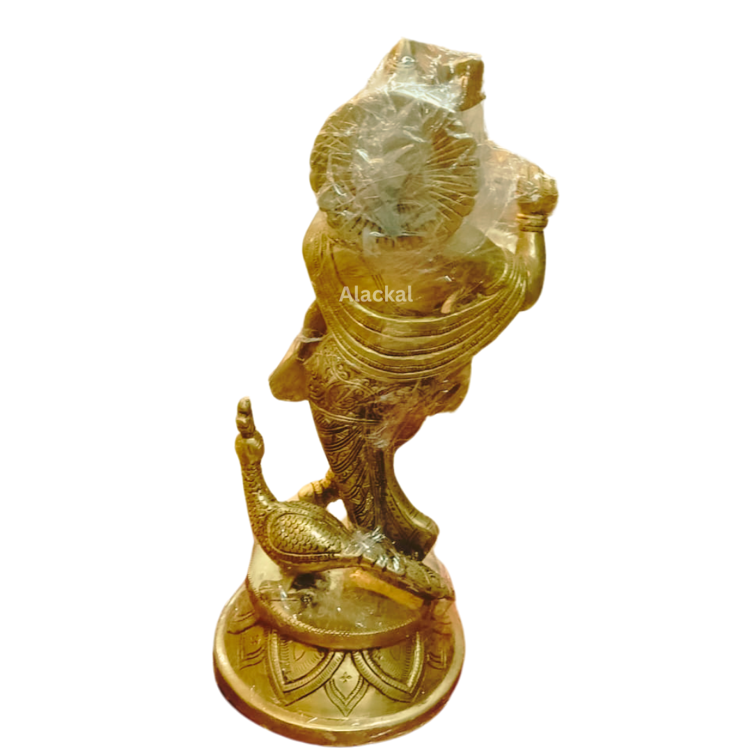 Alackal Bell Metals is known for its high-quality products. The brass Krishna idol with a peacock and base peedom is made using the finest materials, ensuring durability and longevity. Each piece undergoes multiple rounds of quality checks before it is sent to the customer, guaranteeing that only the best reaches the homes of devotees and collectors.