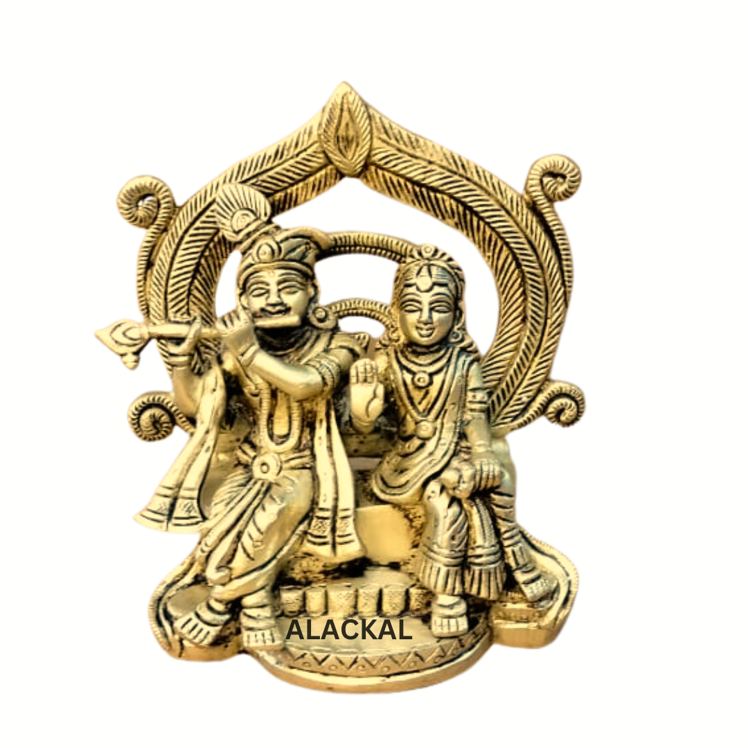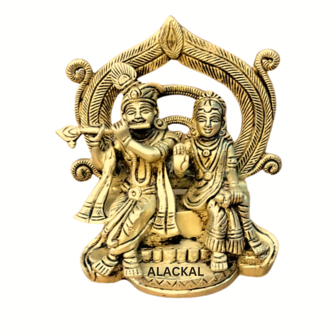 This stunning Brass Sree Krishna Radha Statue is sure to make a statement in any home. Crafted with intricate detailing and a beautiful patina, this piece is perfect for adding a touch of spirituality to your home. Standing 10 inches tall, this statue has been lovingly handmade by artisans in India. It's the perfect gift for any Krishna devotee looking to bring a little peace into their life. Add this statue to your collection today and bring a spiritual touch to your home. This gorgeous brass Sree Krishna Radha Statue is sure to bring beauty and serenity to any home. Handcrafted with intricate details, this statue is a stunning representation of the divine love between Krishna and Radha. It stands 8 inches tall and is a perfect addition to any living room, bedroom, or office. The high-quality brass finish provides a timeless look that will last for years to come. Add this beautiful piece to your collection today. A brass Radha Krishna statue is a beautiful representation of the divine love between Lord Krishna and his beloved Radha, prominent figures in Hindu mythology. These statues are popular for worship, decoration, and as artistic pieces that carry spiritual significance.