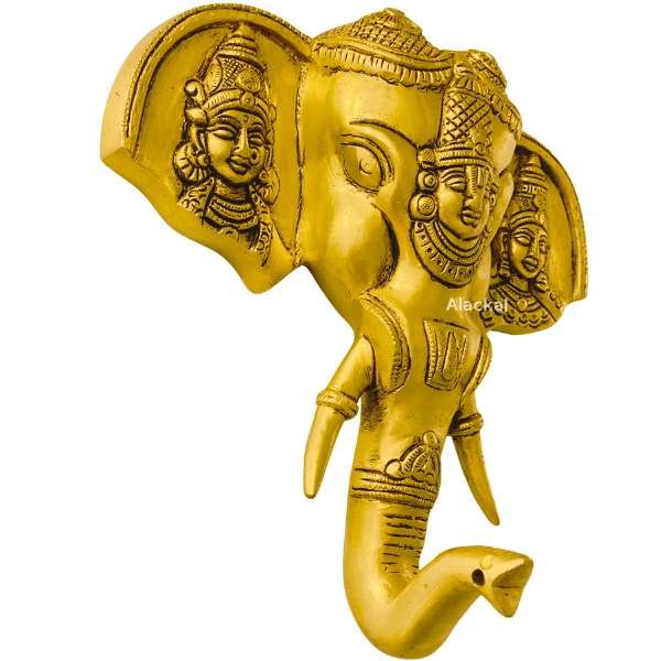 The Divine Brass Tirupati Balaji with Sridevi and Bhudevi Carved on Elephant Head – A Sacred Wall Hanging for Your Home