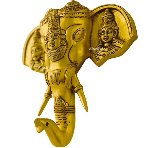 Elephant Head Carving: The elephant represents wisdom, strength, and good fortune in Hindu culture.