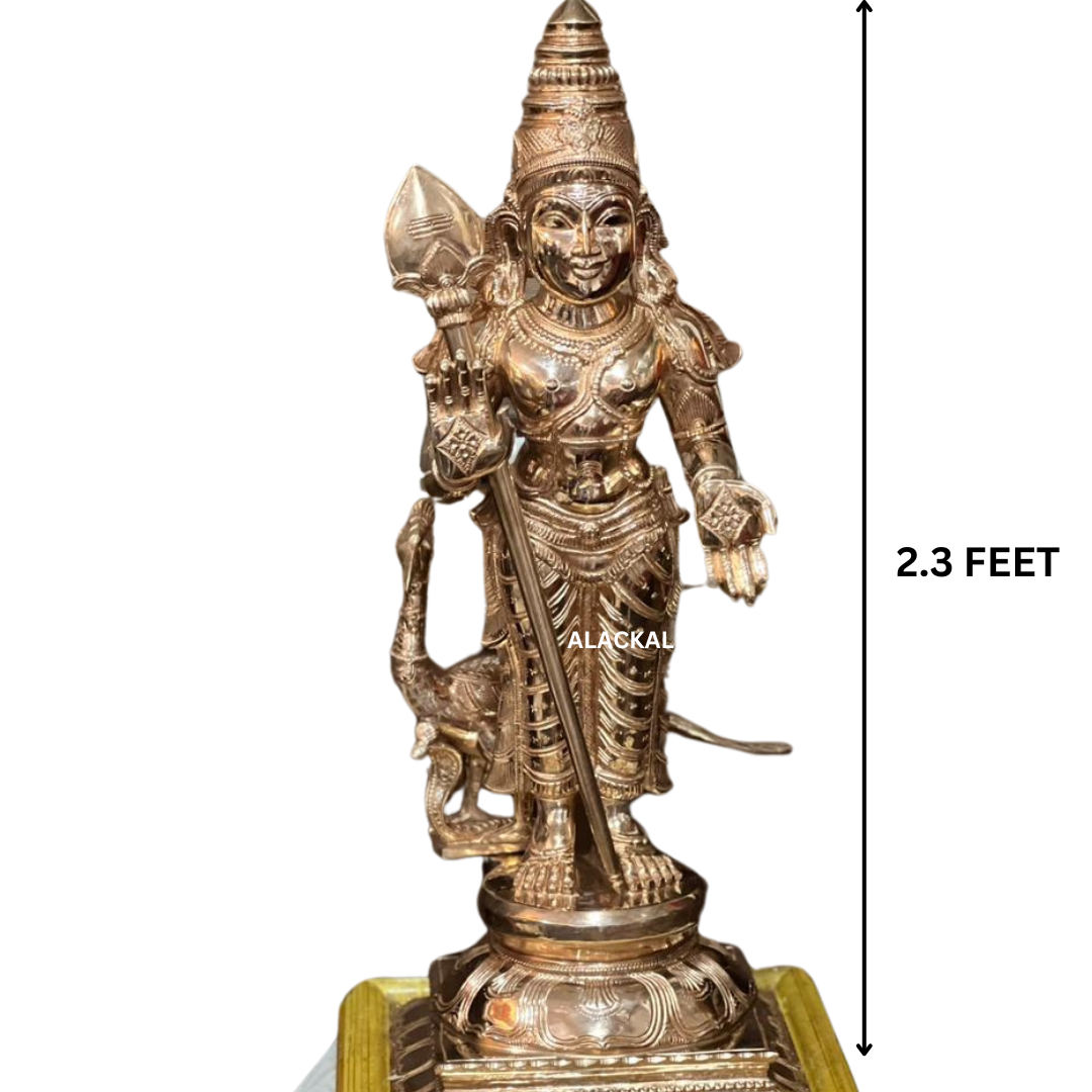 Alackal Bell Metals takes pride in its commitment to quality and tradition. Each bronze Murugan idol is meticulously handcrafted by skilled artisans who have honed their craft over generations. The process begins with selecting high-quality bronze, which is then shaped and detailed to create stunning representations of Lord Murugan, the Hindu god of war and victory.
