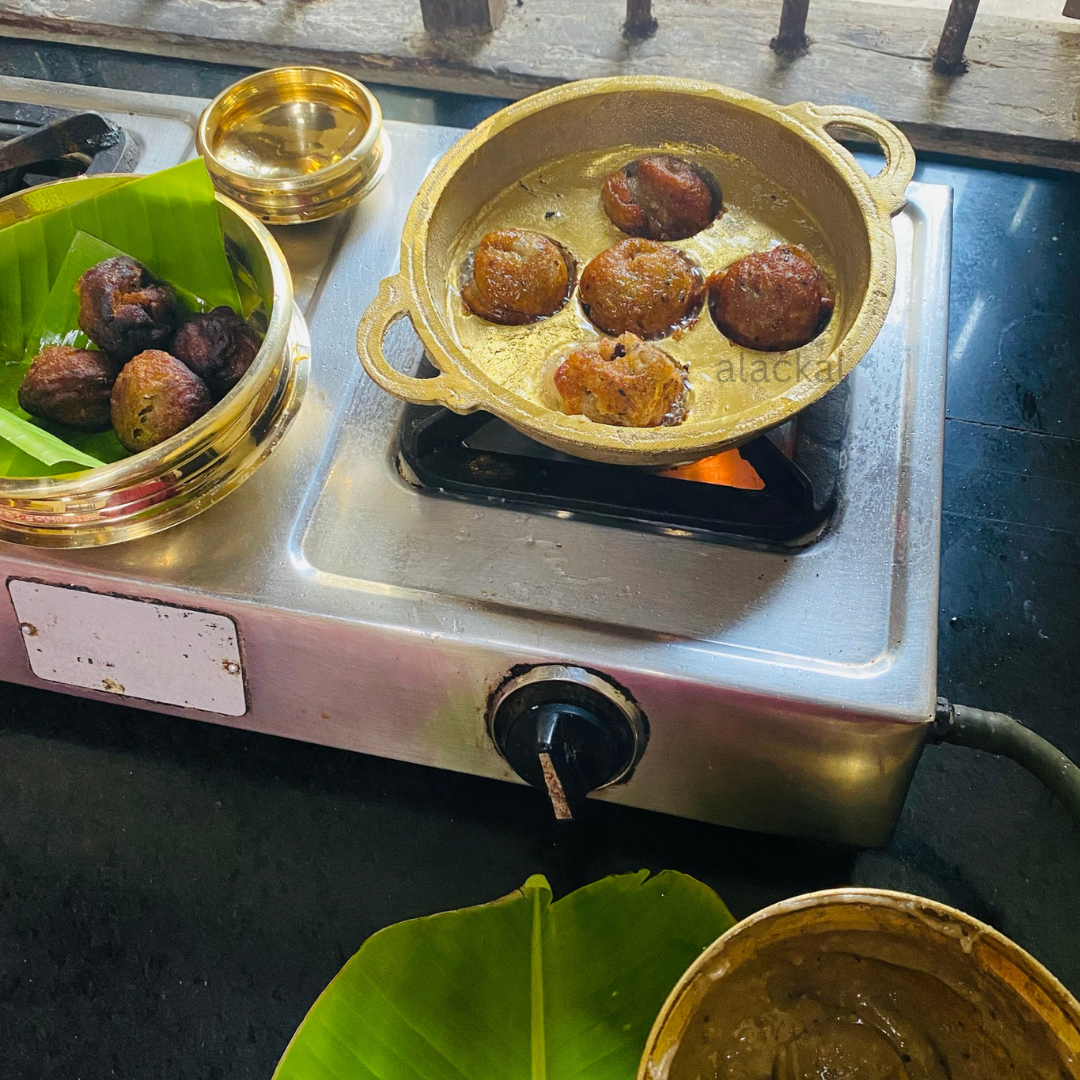 One of the standout features of the Alackal Bell Metals Unniyappam maker is its ability to make these delightful treats with minimal oil. The carefully designed cavities and the superior heat retention of bronze allow for even cooking, resulting in perfectly crispy Unniyappams with just a fraction of the oil typically required.