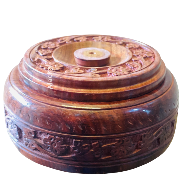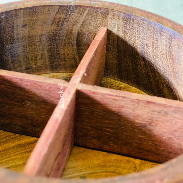 A Masala Box is an integral part of Indian kitchens, allowing easy access to frequently used spices. This round-shaped wooden spice box combines aesthetic appeal with practical design, ensuring a clutter-free and organized kitchen.