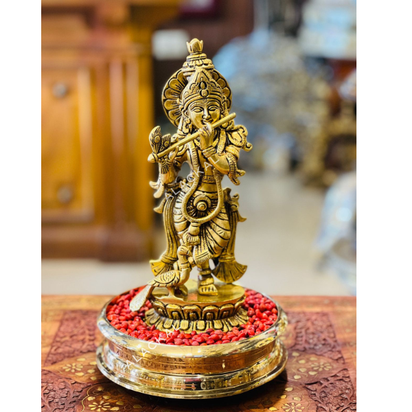 ✅ 1 Feet Tall Krishna Idol – Intricately detailed and beautifully finished in antique brass.