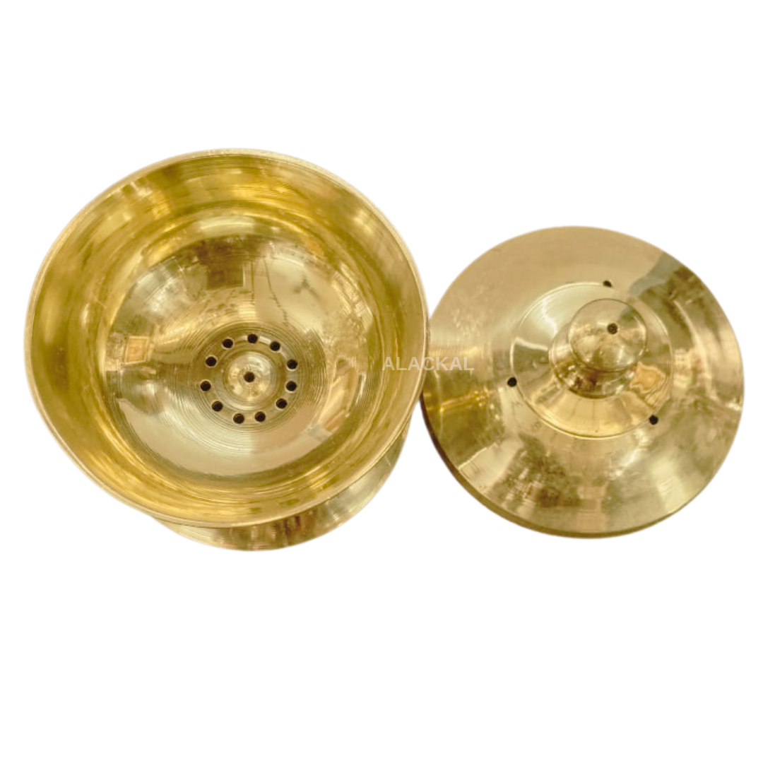 The Chirattaputtu maker, a unique utensil used to prepare puttu, is a small pot with a perforated bottom. This design allows steam to pass through the rice flour mixture, cooking it to perfection. Made from high-quality bronze, the Chirattaputtu makers from Alackal Bell Metals offer several advantages: