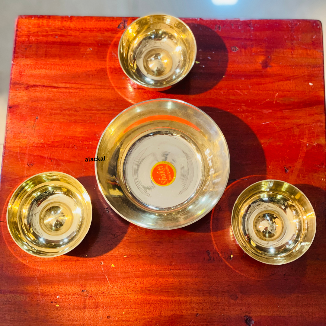 1 Large 12-inch Diameter Plate (1kg weight): The centerpiece of the thali set, this sturdy and spacious plate offers ample space to serve a variety of dishes, from rice and sambar to chutneys, curries, and desserts.
