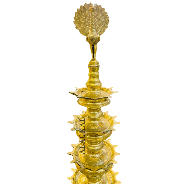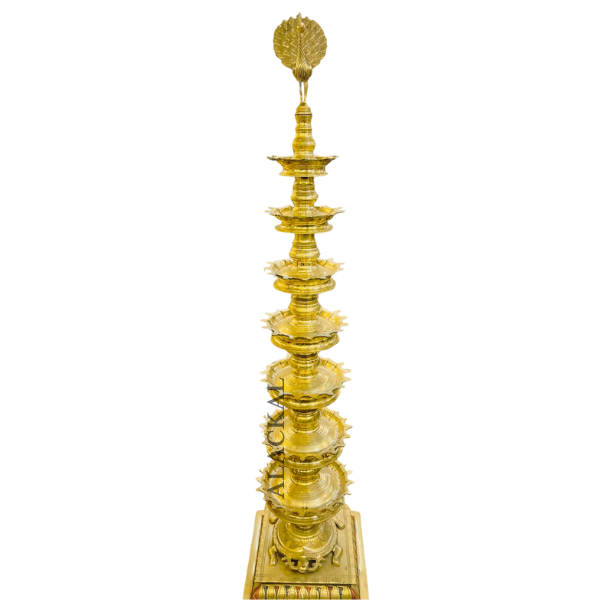 Elevate your space with the divine aura of this majestic handcrafted brass Deepasthambham – a true representation of South Indian spiritual heritage and architectural grandeur. Designed and handcrafted at Alackal Bell Metals, Mannar – Kerala’s legendary brass-making center – this iconic piece combines spiritual significance, masterful craftsmanship, and symbolic elements to create a lamp like no other.