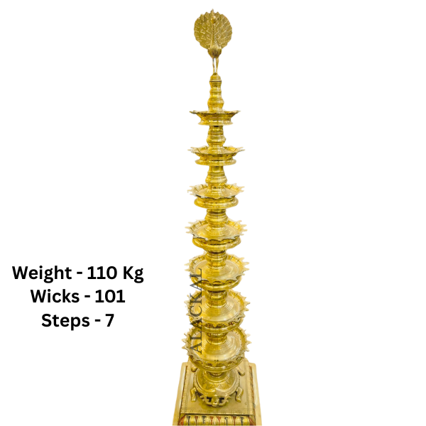 Whether lit during rituals or placed as a central spiritual décor element, this Deepasthambham exudes divinity, prosperity, and heritage pride. The 101 wicks represent the infinite spreading of light, and the Annapakshi on top crowns the piece with divine grace and symbolic beauty.