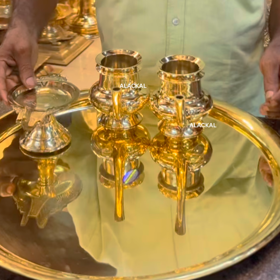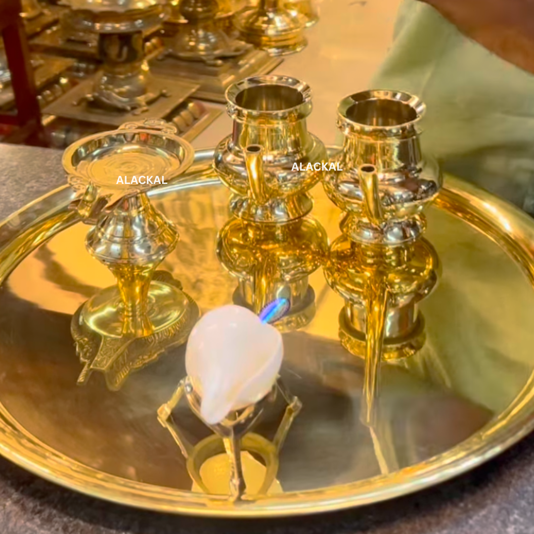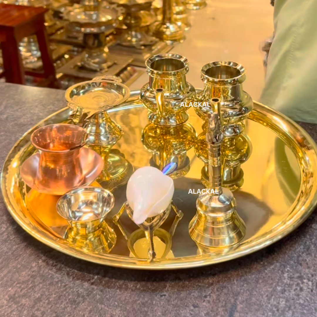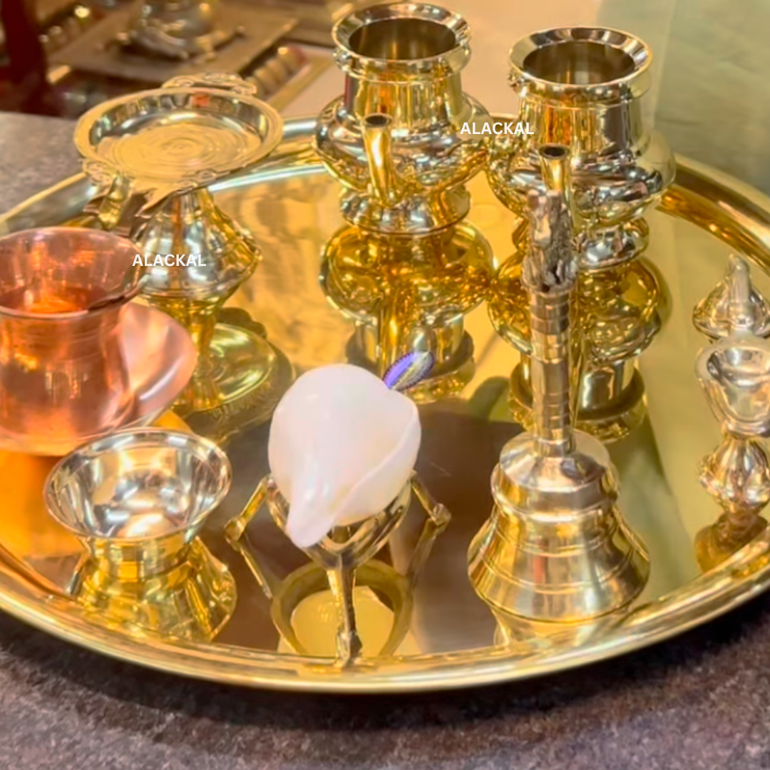Crafted by the legendary metal artisans of Mannar, Kerala, this set includes everything a temple or pooja room needs for complete Hindu rituals. Let's dive into the details of this exceptional pooja set and why it should be an essential part of every sacred space.