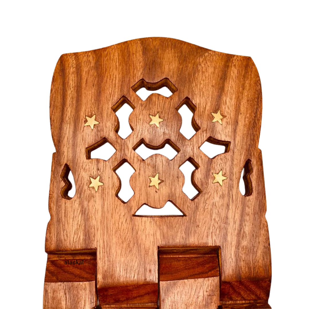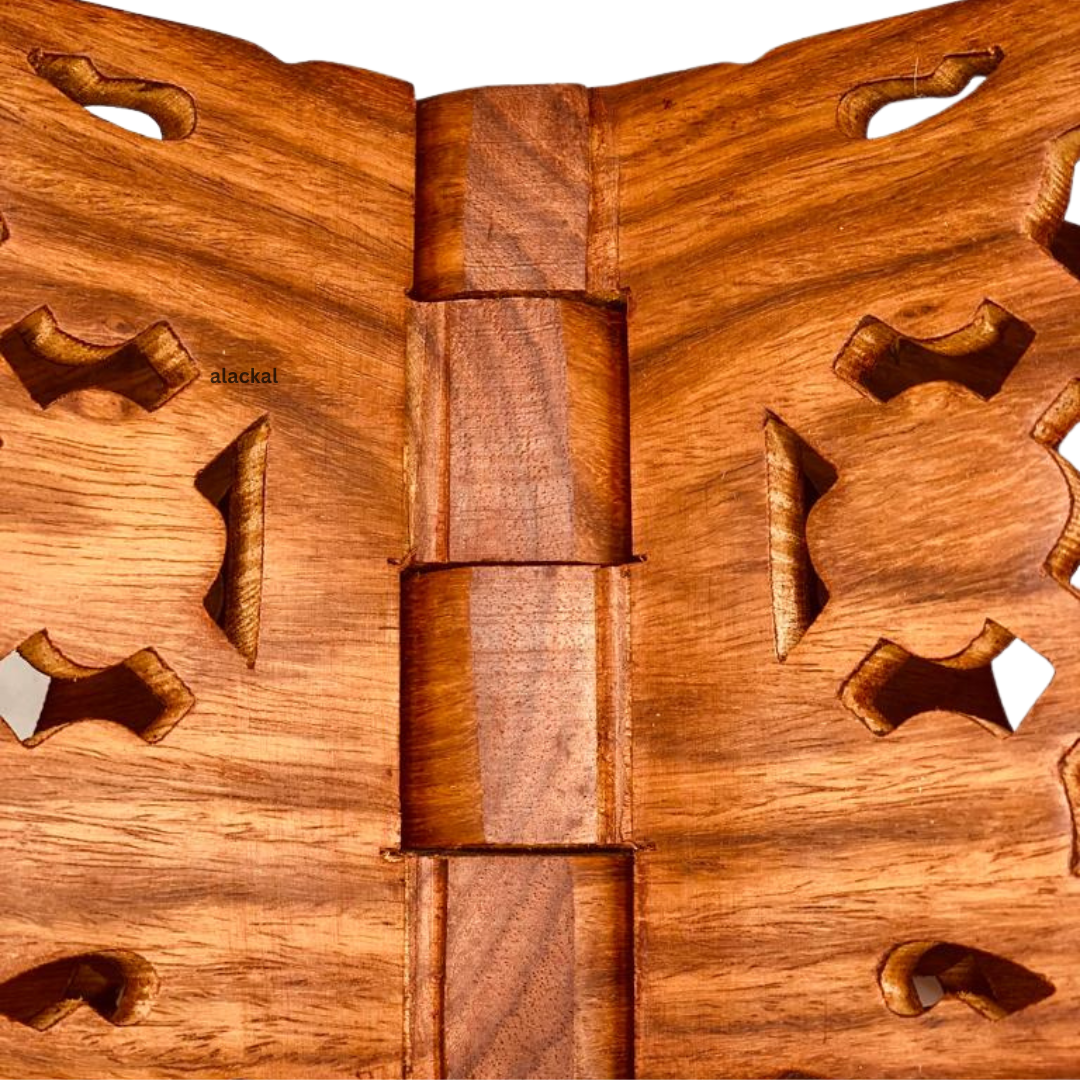 The artisans at Alackal Bell Metals bring generations of skill and expertise to their craft. Each wooden holy book stand is handcrafted from high-quality wood, carefully selected for its durability and natural beauty. The intricate carvings and designs reflect the rich cultural heritage of Kerala, transforming each piece into a work of art. The smooth finish and precise joinery ensure that the stand is not only visually appealing but also robust and long-lasting.